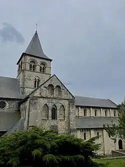 The Abbey is situated in the estuary of the River Seine between the historical center of Le Havre and the town of Harfleur. Its history goes back to the end of the Merovingian epoch[1] in the middle of the 6th century, when hermits were living in the cliffs. Their mission was to promote Christianity in remote areas of Normandy on behalf of the clergy of the Cathedral of Notre-Dame in Bayeux, which was one of the religious centers (together with Rouen) in Normandy. Around that time, the hermits were also joined by the Augustines from the monastery of Sainte Barbe, thus contributing to the establishment of a christian community in Graville. Consequently, between the 10th and 11th centuries, the construction of the building of the Abbey was completed on the hill where the hermits used to live. Finally, the Abbey was founded in the 11th century, supposedly in 1203, by Guillaume Mallet, a companion of William the Conqueror, right after his return from the battle of Hastings.[2] The construction of the Romanesque Abbey was funded on the basis of the tribute that he received both in Normandy and England. Since then, the Abbey had been under the auspices of the noble family of Malet de Graville. Later, the heart of one of the descendants of the family, Louis Malet de Graville (1440–1516), an Admiral of France, was placed in the Abbey as a symbol of connection between the family and the Abbey.