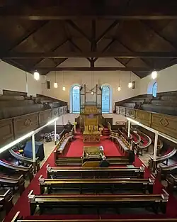 Following communication of the decisions of the first Presbytery meeting, the North Church congregation decided to hear the Rev. John Milwain,[85][46] a preacher from the nearby Reformed Presbyterian Church at Ponfeigh,[35][86][87][88] near Douglas Water,[89] on the Sabbath day (Sunday) the Free Church had chosen to preach it vacant. The North Church session and congregation called Rev. Milwain, and on his acceptance of the call the North Church transferred (both property and congregation) to the Reformed Presbyterian Church with a portion of the congregation choosing to unite with Lesmahagow Free Church.[90][46][91] The transfer was completed on 4 March 1844 and the ministry was shared between Ponfeigh and Lesmahagow North Church for a time until moderation was granted on 28 April 1845. On 10 August 1846, Rev. McMeekin (or Macmeeken) was called as minister to the North church and ordained on 30 December 1846.[92] However, due to financial difficulty, the North Church congregation was dissolved in 1869[46] and therefore did not survive to the time when a majority of the Reformed Presbyterian Church united with the Free Church of Scotland in 1876. Subsequently, the church building was modified and became the village hall, and from 1887, the Jubilee Hall,[93] at the celebration of the Golden Jubilee of Queen Victoria. The building was demolished to make way for a house, which was built in late August 2021.