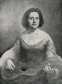 Hutchinson came from a long line of musical ancestors, principally on the maternal side. Her mother sang mostly psalms and hymns, and the first words Abby learned to sing were the sacred songs taught her by her mother, while she stood at her spinning-wheel. When four years of age, Abby could sing alto, which seemed to the family a wonderful performance.[1]