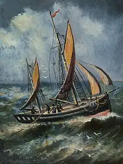 Aberystwyth Trawler, oil painting by Alfred Worthington from the collection of the National Library of Wales