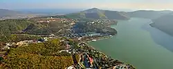 Abrau-Dyurso or Abrau-Durso (Russian: Абрау-Дюрсо) is a rural locality (a selo) under the administrative jurisdiction of the City of Novorossiysk in Krasnodar Krai, Russia. It is located on the shore of Lake Abrau, 14 kilometers (8.7 mi) west of Novorossiysk. It should not be confused with the khutor of Dyurso,[4] which is located 4 kilometers (2.5 mi) to the south, where the Dyurso River enters the Black Sea, and which is sometimes incorrectly considered to be a part of Abrau-Dyurso.[5] Population: 3,519 (2010 Census);[1] 2,982 (2002 Census);[6] 2,792 (1989 Soviet census).[7]