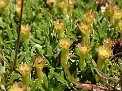 Abrotanella nivigena (common name - Snow wort)[1] is a member of the daisy family and ranges from southeast New South Wales to eastern Victoria, Australia,[2] growing in the Kosciuszko region.[1] It is a cushion plant growing from 3 to 5 cm tall.[1]