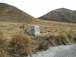 A roadside memorial erected in 1971 commemorating the centenary of the release of red deer by the Otago Acclimatisation Society.