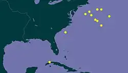 This marine species occurs in the Western Atlantic Ocean off Virginia, USA; in the Caribbean Sea off Saint Lucia.