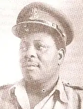 Originally a teacher and clerk, Fajuyi, a native of Ado Ekiti, joined the army in 1943, and as a sergeant in the Nigeria Signal Squadron, Royal West African Frontier Force, was awarded the British Empire Medal in 1951 for helping to contain a mutiny in his unit over food rations.[4] He was trained at the Eaton Hall Officer Candidate School in the United Kingdom from July 1954 until November 1954, when he was short-service commissioned.[5] In 1961, as the 'C' Company commander with the 4 battalion, Queen's Own Nigeria Regiment under Lt. Col. Price, Major Fajuyi was awarded the Military Cross for actions in North Katanga and extricating his unit from an ambush.[6] On completion of Congo operations, Fajuyi became the first indigenous commander of the 1st battalion in Enugu, a position he held until just before the first coup of January 1966, when he was posted to Abeokuta as garrison commander. When Major General Ironsi emerged as the new C-in-C on 17 January 1966, he appointed Fajuyi the first military governor of the Western Region.[7]