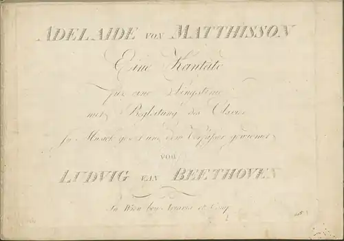 ADELAIDE by MATTHISSON. A cantata for voice with keyboard accompaniment. Set to music, and dedicated to the author, by LUDVIG van BEETHOVEN. Artaria and Co., Vienna.