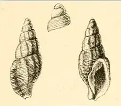 (Original description) The shell is narrowly oblong, with a fulvous hue. It is faintly banded and variegated with brown, becoming pearly white at the apex. The spire is elongately acuminated, slightly convex at the sides. There are 5½ whorls, with the first 1½ whorls smooth and shining, and the subsequent whorls rather convex, irregularly plicate, and varicose.