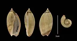 | Shell of Agaronia hilli (holotype at the Smithsonian Institution) | |