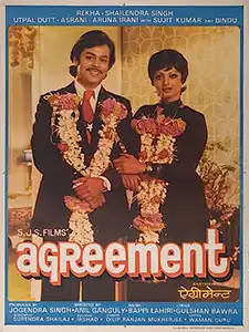 Agreement is a 1980 Bollywood drama film directed by Anil Ganguly[1] and produced by Joginder Singh.[2] The film starred Rekha and Shailendra Singh in leading roles.[3]