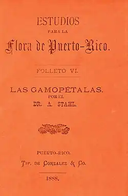 Stahl wrote "Estudios sobre la flora de Puerto Rico" (A study of the Puerto Rican Flora), published in six fascicles from 1883 to 1888. Copies of Stahl's plant collection with approximately 1,330 plants can be found in various botanical gardens around the world. His collections were the basis for numerous studies by specialists, some of them resulting in new taxa to science.[2][3]