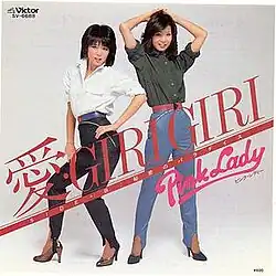 "Ai Giri Giri" (愛・GIRI GIRI, lit. "Last Minute Love") is Pink Lady's 17th single, and their first single not to reach the top 40. The duo broke away from their disco and teen pop music, and they focused more on soft rock music.[1]