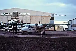 In 1987, G-AMCA was removed from freight work and flown to Greybull, Wyoming for conversion to spray configuration by Hawkins & Powers. Air Atlantique then converted a second DC-3, G-AMHJ, which was re-acquired having been sold off with the postal contract two years earlier.[3][6] The pollution control contract required the use of a Cessna 402 fitted with an Ericsson side looking airborne radar to detect oil spills which resulted in G-MPCU joining the fleet in early 1988. Five BN-2 Islanders (G-AXZK, G-BCEN, G-BELF, G-BNXA, G-BNXB) joined the fleet from September 1987 and were converted to spray configuration at Coventry.[6][3][31]