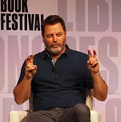 The gesture became very popular in the 1990s and was frequently used by comedian Steve Martin in stand-up comedy shows.[4] Another popularization of air quotes was the character Bennett Brauer, played on the sketch comedy show Saturday Night Live by Chris Farley, an aggressive but socially awkward commentator who used air quotes to mock societal expectations of him. Additionally, in the Austin Powers film series, Dr. Evil makes exaggerated use of air quotes when explaining matters to his henchmen, particularly while using real phrases he erroneously believes himself to have coined such as "laser" and "Death Star." Donald Trump used air quotes when he criticized “quote-President” Obama's refugee policies.[5]