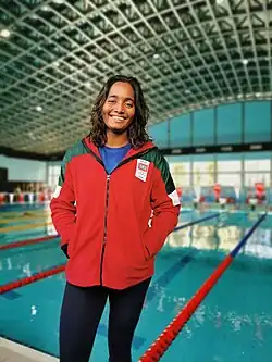 Having found a passion for swimming at the age of 9 years while completing an activity badge for her school’s Little Maids group, she started competing at the national level in local competitions. Before making her international debut at the 2009 World Aquatics Championships[1][2][3][4][5] held in Rome, Italy, she also represented her country at regional events such as the South Asian Games and the Indian Ocean Island Games.