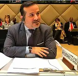 He has also attended multilateral forums including the IMF 2020 Annual Meetings,[34] the 2018 Geneva Conference on Afghanistan,[35] and the World Bank Seminar on Policy Challenges for the Financial Sector;[36] as well as spoken at numerous think tanks, including describing economic reforms at the Wilson Center (2018),[37] investment opportunities at the Heritage Foundation (2019),[38] and the collapse of the government at the Atlantic Council (2021).[39]