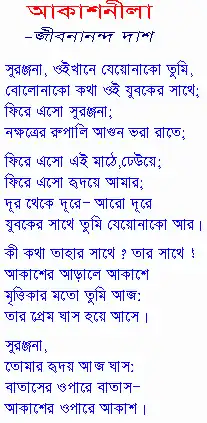 "Akashlina" (Bengali: আকাশলীনা) is one of the most well-known poems written by Bengali poet Jibanananda Das. It was composed in the late 1930s, and was first published in 1940 in a verse collection named Satti Tarar Timir.[1]