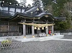 The main festival of the shrine is held annually over three nights in December, and features ceremonies using huge flares and other fireworks.[1]
