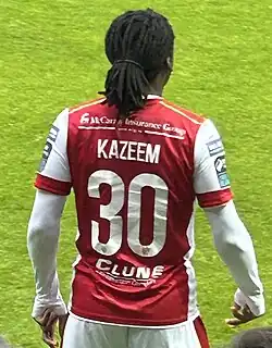 On 1 July 2024, Kazeem signed a multi-year contract with League of Ireland Premier Division club St Patrick's Athletic.[7][8] He made his debut for the club on 4 July 2024, replacing Anthony Breslin in the 79th minute of a 1–0 loss away to Waterford.[9] On 1 August 2024, he made his first career appearance in European competition, coming off the bench away to Vaduz of Liechtenstein as his side drew 2–2 at the Rheinpark Stadion for a 5–3 aggregate win, to set up a tie with Sabah of Azerbaijan.[10] On 30 September 2024, Kazeem scored his first goal for the club, an 88th minute winner in a 3–2 victory in a Dublin Derby away to rivals Shelbourne which he scored with his first touch of the game having replaced Brandon Kavanagh from the bench a minute earlier.[11] On 8 October 2024, Kazeem was part of the Pats side that defeated St Mochta's 2–1 in the final of the 2023–24 Leinster Senior Cup.[12] On 20 July 2025, Kazeem scored his first goal of the season in an 8–0 win at home to UCC in the FAI Cup.[13]