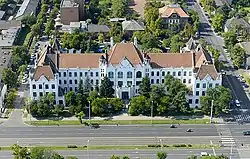Albert Neumann was born into a wealthy Jewish family in Szeged, south of Budapest. His father, Miksa Neumann (1837–1912), was the vice-president of the Budapest Commodity and Stock Exchange and was a member of the Chevra Kadisa in Pest for decades, and his mother was Júlia Heiduschka.[3] In 1891, he converted to Catholicism and thus was fully "Hungarianized."[4] Albert Kőrössy matriculated to the Royal Joseph Polytechnic University in Budapest (now the Budapest University of Technology and Economics), and then went on to the École des Beaux Arts in Paris, then arguably the most prestigious architectural school in the world.[5] He later studied at the Königliche Bauakademie in Berlin, and eventually made his way to Munich, where he received his degree in architecture as a student of the famous German Baroque-revival architect Friedrich von Thiersch.[6]
