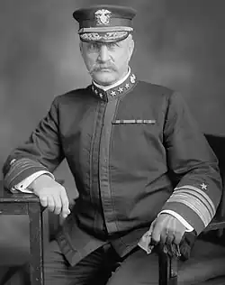 In the summer of 1917 — some three months after the United States entered World War I — Grant took over Battleship Force 1, Atlantic Fleet, with additional duty in command of Squadron 2 and Division 4. This position gave him the rank of vice admiral. During the last four months of 1918, Grant served as acting commander of the entire western portion of the U.S. Atlantic Fleet during the absence of Admiral Henry T. Mayo. He was awarded the Distinguished Service Medal for his World War I service.[1] In 1919, he became commandant of the Washington Navy Yard and superintendent of the Naval Gun Factory.