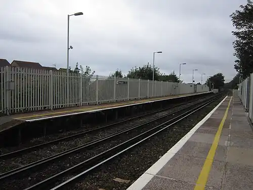 Dyke Junction Halt was opened in 1905[1] by the London, Brighton and South Coast Railway with short wooden platforms. In 1932 new longer platforms were constructed on an adjacent site nearer Hove to the previous platforms. They were renamed Aldrington Halt and later rebuilt in concrete by the Southern Railway. It is situated just east of the former junction with the branch line to Devil's Dyke, which opened in 1887 and closed in 1939; the layout and curvature of certain roads and buildings immediately north-west of the station indicates where the branch ran.