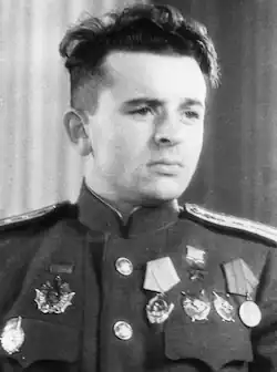 Aleksandr Terentyevich Karpov (Russian: Алекса́ндр Тере́нтьевич Ка́рпов; 17 October [O.S. 4 October] 1917 – 20 October 1944) was a squadron commander and flying ace in the 27th Vyborg Guards Fighter Aviation Regiment during the Second World War credited 27 individual and nine shared aerial victories, the most of any pilot in Soviet Air Defense Forces.[1][2][3]