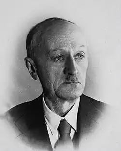 During World War I, in December 1914, the Warsaw–Kalisz Railway line was converted to standard gauge (1,435 mm). The German occupation authorities, by order of the Imperial German President of the Police Mateusz von Oppen on 18 August 1915, annexed to Łódź, among others, Bałuty and Żabieniec – the northwestern boundary of the city was then drawn along the Warsaw–Kalisz Railway line.[22][23][24] The Germans also introduced German-language street names – from 1915, the part of Aleksandrowska Road that was within Łódź was named Alexandrower Straße (now Bolesław Limanowski Street), and the part outside the city, beyond the railway crossing, was called Alexandrower Land Straße.[7] During the war, Łódź residents suffered from, among other things, a lack of fuel. As a result, in 1915, abandoned wooden summer villas in the village of Kały, through which Alexandrower Land Straße ran, were completely dismantled for fuel.[25]