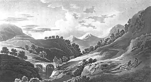 Campbell now produced 'A Journey from Edinburgh through parts of North Britain [1802, new edition 1811], with drawings made on the spot' by the writer. This is an interesting and even valuable picture of the state of many parts of the country at the beginning of the century. Francis Jukes worked throughout 1802 on publishing for him "A Journey from Edinburgh to Parts of North Britain" aka "A Journey to Scotland".[1]