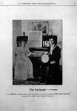 Alfred A. Farland and Annie Farland, S. S. Stewart's Banjo and Guitar Journal, October–November 1893. Annie was his niece.[23]