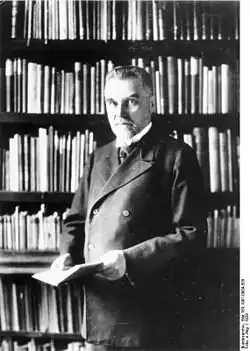 In 1915, after twenty years, Grotjahn withdrew from running his own medical practice and instead accepted a position in charge of the social hygiene department at the Berlin City Medical Office. In 1919, he became Medical Director of the Berlin Housing Department, focusing on the need to use post-war city housing development as a tool for improving health and welfare, applying some of the ideas adumbrated in Hellerau and, in Garden Cities of To-morrow in England, by Ebenezer Howard and others. Meanwhile in Germany military defeat was followed by the fall of the monarchy and, especially in the ports and cities, intensified economic hardship, and a succession of frequently localised revolutions during 1918/19. As the political backdrop became ever more unpredictable, in 1920 the newly installed Social Democratic (de: Kultusministerium Prussian Minister for the Arts and Education), Konrad Haenisch, installed Alfred Grotjahn as the first Ordinary (i.e. full) Professor for Social Hygiene at the and University of Berlin.[14] Despite having been a long-standing supporter of the Social Democratic Party, Grotjahn had only become a party member in 1919.[6] The professorial appointment was remarkable in several respects. Grotjahn became the first Professor for Social Hygiene anywhere in Germany. Furthermore, the minister made the appointment in direct defiance of the university medical faculty. His old opponent Max Rubner made every effort to belittle him in front of colleagues at his inauguration, with the result that for several years Grotjahn did not bother to attend faculty meetings. Nevertheless, he retained then professorship for the rest of his life.[6] As the decade progressed animosities within the faculty subsided and, supported by his growing public profile outside the university, he managed to gain a measure of acceptance with members of the university establishment. He increasingly attended faculty meetings and, indeed, mane use of the detritus they produced. After attendees had departed at the end of the meetings he would rummage in the waste paper bins and pull out discarded notes by colleagues which he thought might be of interest for his further researches on psychological aspects of Social Hygiene. By 1927, where he was proposed to serve a year as dean of faculty, there were only two votes against the proposal.[1][2][4][5][15]