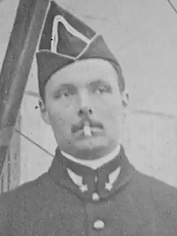 De Meux first served as a cavalryman and second lieutenant for a regiment, before he was wounded in August 1914.[1][6][7] Thereafter, he entered the Service Aéronautique in March 1915 as a machine gunner and observer after the regiment he first was in disbanded.[6] While in a Caudron as an observer, he shot down a German enemy plane and received his second citation à l'ordre de l'armée.[4][8] De Meux then transferred to aviation, working as an air gunner while also teaching himself how to operate aircraft.[1][6] He became a pilot on 22 March 1915, becoming one of several aviators to receive his military flying certificate without attending aviation school.[1] He first flew a Farman aircraft for several months, scoring a victory, before transferring to another regiment, and entering combat in the Battle of Verdun thereafter.[4] De Meux then met Georges Thenault, commander of the Lafayette Escadrille, and Thenault requested De Meux to join the aviation unit.[4] De Meux accepted Thenault's request, becoming second-in-command of the unit in Luxeuil on 20 April 1916.[4] Thenault and De Meux became the only two French aviators in the Lafayette Escadrille, though there were French ground crews and mechanics in the aviation unit.[9]