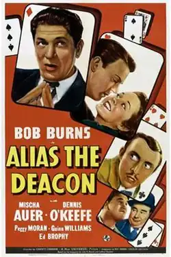 Alias the Deacon is a 1940 American comedy film directed by Christy Cabanne and written by Nat Perrin and Charles Grayson. It is based on the 1925 play The Deacon by John B. Hymer and LeRoy Clemens. The film stars Bob Burns, Mischa Auer, Peggy Moran, Dennis O'Keefe, Edward Brophy, Thurston Hall, Spencer Charters, Jack Carson and Guinn "Big Boy" Williams. The film was released on May 17, 1940 by Universal Pictures.[1][2][3]