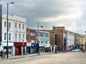 ![]() All Saints' Church with neighbouring shops (and East Street in between) in 1852 | |