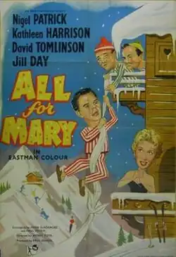 All for Mary is a 1955 British comedy film directed by Wendy Toye and starring Nigel Patrick, David Tomlinson, Jill Day and Kathleen Harrison.[1][2] It was written by Peter Blackmore, Paul Soskin and Alan Melville based on the successful West End play of the same title by Kay Bannerman and Harold Brooke,[3] and was produced by Paul Soskin Productions for the Rank Organisation.