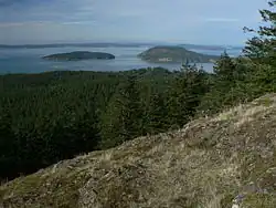 Allan Island (on left) from Fidalgo Island. Also visible : Burrows Islands (on right) and Lopez Island (distant horizon)