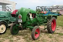 In the year 1906, Allgaier Werke Gmbh were founded by Georg Allgaier in Hattenhofen near Göppingen producing simple cutting and punching tools. In 1918 the company went to Uhingen, five miles away. First bigger assignment of large-scale body panels went to France and Belgium in 1928. 1929 Allgaier started to produce press maschines for car industry. 1933–1945 the company produced plane parts and windmills, but also bombs. For many years, Ulrich W. Hütter was the chief of construction. A soviet employee, Unterleutnant Stepan was hanged on 27 October 1943 by the Gestapo.[4] Georg Allgaier died 1946. His heirs kept the company running, and in this year the company brought first tractor, model R 18, on the market. In 1953 production of wind energy systems for worldwide purpose was started. In 1955 production of motors and tractors was sold to Porsche-Diesel Motorenbau GmbH verkauft. Then production of screening machines started and also process technology. In the mid 60's the company had around 3000 employees. However, business with farming machines declined. The number of employees was less than 1000.[5]