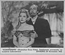 Almafuerte is a 1949 Argentine melodrama film of the classical era of Argentine cinema, directed by Luis César Amadori and written by Belisario García Villar. The film is a biography of the Argentine poet Pedro Bonifacio Palacios (better known by his sobriquet Almafuerte). The film starred Narciso Ibáñez Menta as Almafuerte and Pola Alonso.