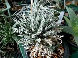 Aloe haworthioides is a species of plant in the genus Aloe native to Madagascar.[2][3] This aloe is named for its leaves, which are covered with soft spines that create a resemblance to Haworthia species.[4] A small species, it grows in stemless, clumping offsets and sports orange, highly fragrant flowers.