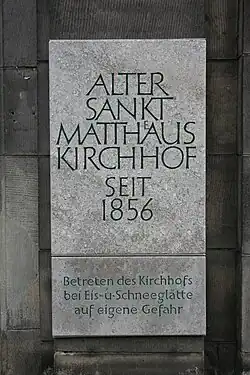 - ^ a b Mertens, Lutz; Wenzel, Marita. "The Old St. Matthew's Cemetery in Berlin-Schöneberg" (in German). Zwölf-Apostel-Kirchhofsverwaltung (Twelve Apostles Cemetery Administration). Archived from the original on 2007-12-11. Retrieved 28 November 2014.