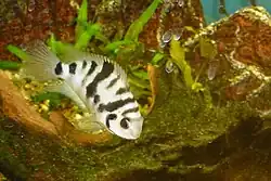 Amatitlania siquia is a species of cichlid native to Central America.[2][3] These cichlid can be identified by black melanin-based stripes in males and an additional bright orange spot on the abdomen for females.[4]