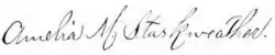 Amelia Minerva (or Minerver) Starkweather was born in Starkville, New York, July 9, 1840.[1][3] Her parents were Merritt and Hannah (Saunders) Starkweather.[2] She had at two siblings, a sister,[4] Harriet Starkweather Osborn, and a brother, William Henry Starkweather. She was a descendant of Robert Starkweather, first of the name in the United States.[1] At the age of four years, she removed with her parents to Bergen, New York.[5]