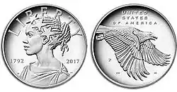 The American Liberty 225th Anniversary gold coin (or 2017 American Liberty gold coin) is a one-ounce gold coin minted to commemorate the 225th anniversary of the U.S. Mint. It was released on April 6, 2017. A companion series of one-ounce silver medals bearing the same designs was released on October 6 later that year.[1]