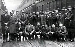 W&J's 11 players boarding the train for the 1922 Rose Bowl.