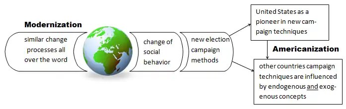 "We hypothesize that adoption of Americanized campaign methods may reflect a wider, more general process that is producing changes in many societies, changes which are difficult to attribute to a single cause and which go far beyond politics and communication. [...] [W]e call this more general process ‘modernization’."[11]