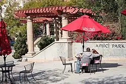 Amici Park is a park in Little Italy, San Diego.[1] The park contains multiples bocce ball courts, a small amphitheater and a large playing field. The park is used by students of Washington Elementary School.[2] The park also has bronze sculptures of dinners, with embossed recipes, from Little Italy's early immigrants.[3] It is located one block uphill from the central plaza of Little Italy.