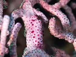 It is found in the western Pacific Ocean, living in association with a gorgonian; its colour varies so that it matches the colouring of its host gorgonian.