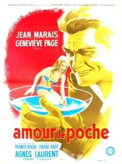Amour de poche (Girl in His Pocket) is a French comedy fantasy film from 1957, directed by Pierre Kast, written by France Roche, starring Jean Marais. The scenario was based on the short story The Diminishing Draft of Waldemar Kaempffert.[2]