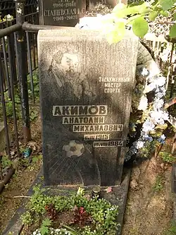 Anatoly Mikhaylovich Akimov (Russian: Анато́лий Миха́йлович Аки́мов; April 6, 1915, Moscow, Russian Empire — August 10, 1984, Moscow, RSFSR, USSR) was a Soviet football goalkeeper. Honored Master of Sports of the USSR (1940), Honored coach of the RSFSR (1963). Player Team Moscow. Head coach of the Democratic Republic of Vietnam (1958-1960).