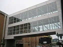 Two-story skyway above Sixth Avenue connects the mall with the former Nordstrom.