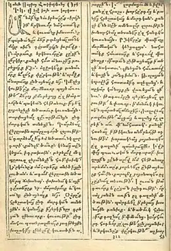 The social-political and cultural upheaval that began in the first half of the 17th century also affected literary literature. Alongside the development of the art of copying ancient manuscripts, printing, and folklore, new literary values were created.[203] At the same time, due to the political situation, the changes of the new era slowly penetrated into Armenia. The 17th-18th centuries essentially continued and completed medieval literature.[13] At this time, the ideology of the Armenian national liberation movement and the bourgeois trade was also forming. Lyrics remained the leading literary genre. According to Henrikh Bakhchinyan, the three main directions of its development were religious-patriotic poetry, secular poetry, and folk gusan songs. Despite their unique features, these directions were not strictly differentiated and represented mutual influences within the framework of the unified artistic thinking of that time. Sometimes in the works of one author, one can see different poetic directions of the era. In this sense, the creativity of Martiros Ghrimetsi from "The Armenian Grimoire," combining religious hymns, secular poetry, and pastoral poetry, is characteristic.[204] As noticed by S. La Porta, the opposition between religious and secular literature represents a false dichotomy: "Instead, they should be seen as brothers and sisters sharing one destiny".[205] All dominant tendencies reflected literary continuity with subsequent linguistic-poetic properties, themes, and directions. For example, religious-patriotic poetry repeated and developed a similar medieval tradition. Its language was mainly grabar, sometimes Middle Armenian, and the themes were taken from the Bible or Armenian history. It had enlightenment goals, with the audience mainly being future leaders and enlighteners of the church. In turn, religious-patriotic poetry is divided into three parts: purely religious, national-church, and historical-political. Purely religious poetry lagged behind in its artistic qualities compared to similar medieval works, which was a consequence of the dominance of religious ideals over secular ones in the modern era. However, religious poetry acquired a greater social mission. National-church poetry of the 18th century gained particular weight, synthesizing biblical and Armenian national plots. Historical-political poetry, reflecting the military past and present of the Armenian people, its liberation aspirations, also developed.[204] Most poets of the 17th century were representatives of the common people, which largely determined the ideological aspect of their literature.[88] Secular themes and thematic diversity predominated in literature as a whole.[206]